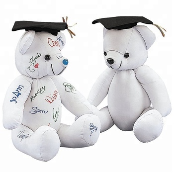 स्मारिका उपहार 100% कार्बनिक कपास सफेद स्नातक गाउन और टोपी कस्टम हस्ताक्षर के साथ टेडी बियर खिलौना थोक आलीशान भालू