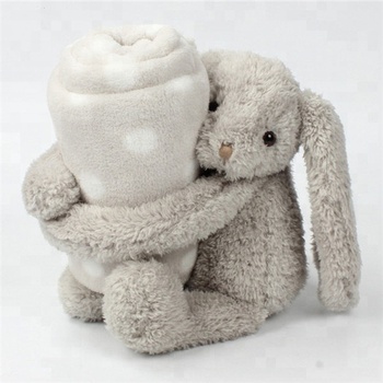 ผ้าห่มขนแกะปะการัง100% ผ้าฝ้าย OEM ที่กำหนดเองหูยาวน่ารักเด็กนุ่มกระต่ายสีเทาผ้าห่มเด็ก